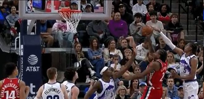 北京时间1月2日,洛杉矶快船在主场以118-101有惊无险战胜犹他爵士,豪取6连胜。比赛的转折点来到末节8分56秒,莱昂纳德上篮的时候被小克莱顿扫到了面部并且打出血,但是爵士居然挑战成功,结果变成莱小卡被帽,判定这个球快船出界,球权给到爵士。