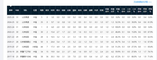 孙桐林C类合同,上赛季场均仅能为山东男篮贡献1.8分,本赛季5次出场后,场均只有0.2个篮板,其余得分数、助攻数、盖帽数均挂零。