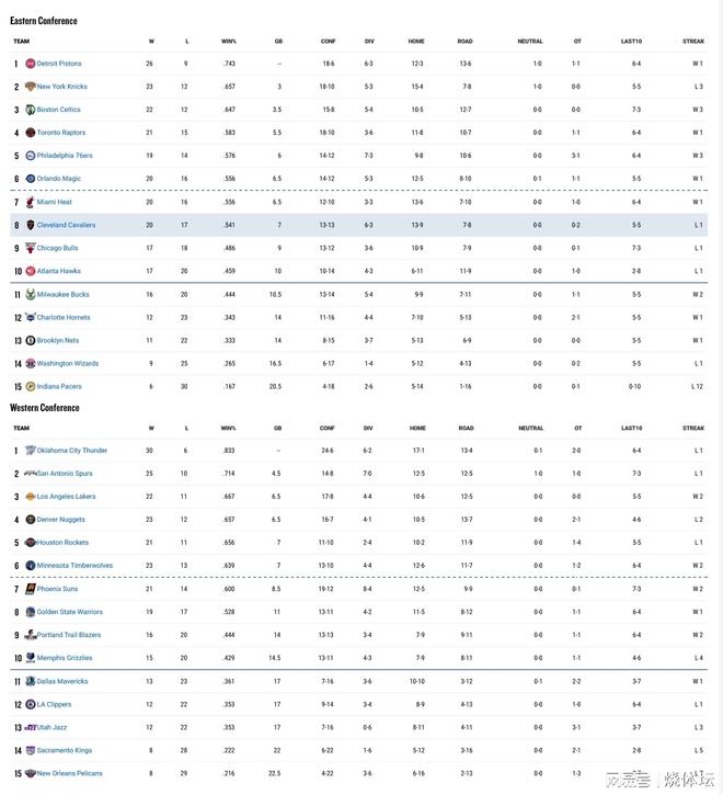 东部联盟的尼克斯、凯尔特人、猛龙、魔术、热火和骑士目前都已达到20胜,其中魔术在最新比赛中力克步行者,送给对手12连败。步行者本赛季的表现实在低迷,上赛季一路过关斩将打进总决赛,距离总冠军就差一口气,而本赛季却直接跌入谷底。