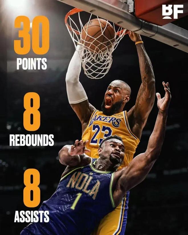 - 30+8+8!詹姆斯打爆锡安!湖人13胜0负领跑全联盟