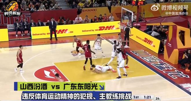 二、第一节还有4分钟,出现了三起情况,迪亚洛进攻时勾倒陈家政,但裁判反判陈家政犯规,裁判报告认定迪亚洛进攻犯规;王少杰抬起右手臂并直接砸迪亚洛后背,属违体犯规,本应该从技犯升级为违体,但最终看过回放后维持原判。