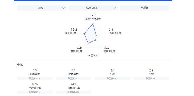 A1类合同在身的王浩然,本赛季不知不觉间已成长为潜在国产第一锋线。12次出场后,他场均可拿到16.3分6.1篮板2.4助攻,三分命中率为41.7%。其中他的得分数,篮板数,三分精准度均在曾凡博、朱俊龙、张镇麟等国家队主力锋线之上。