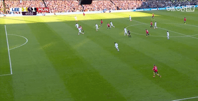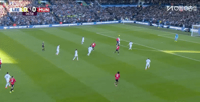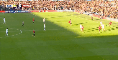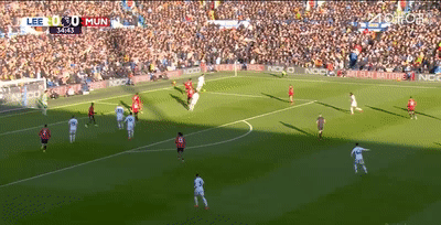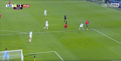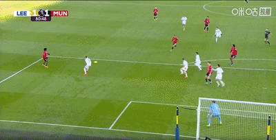 第34分钟,利兹联前场右侧传中,勒温前点头球冲顶,可惜皮球击中远端立柱弹出,曼联逃过一劫。