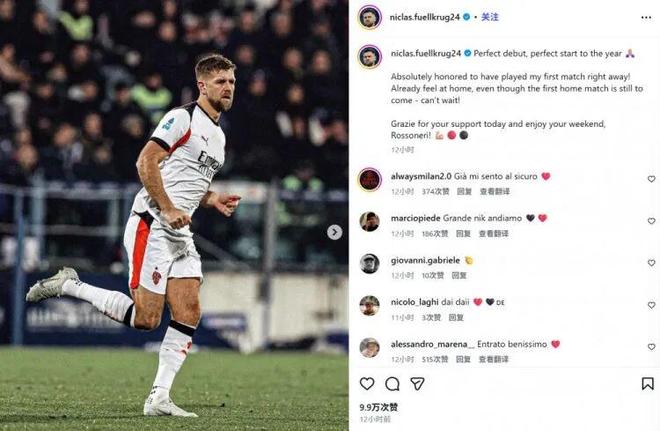社媒丨菲尔克鲁格纪念米兰处子秀-24直播网