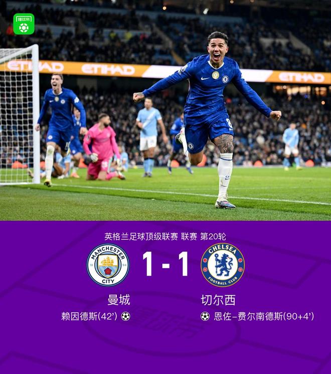 - 第94分钟绝平,恩佐当选曼城vs切尔西全场最佳球员