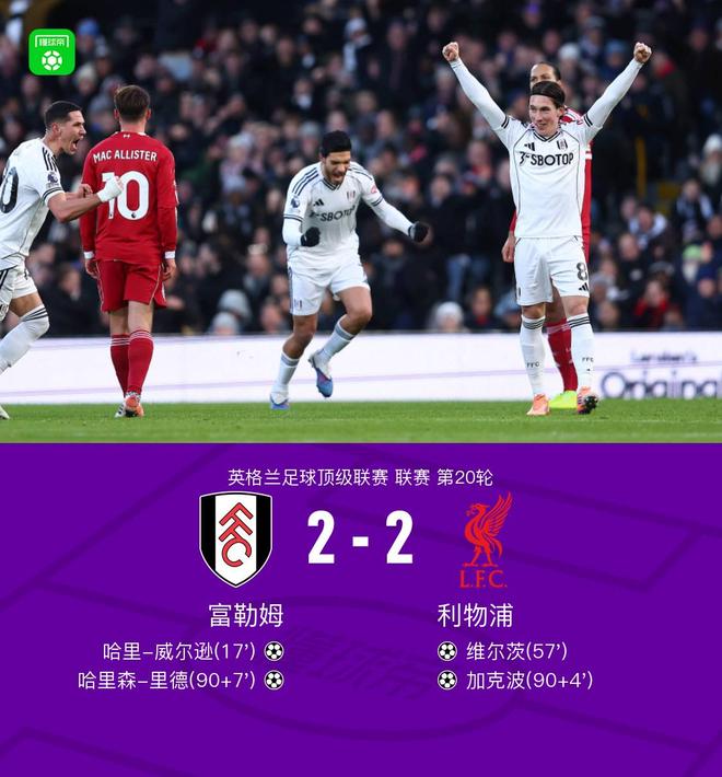 剑南春丨富勒姆2-2利物浦,维尔茨、加克波破门,里德绝平