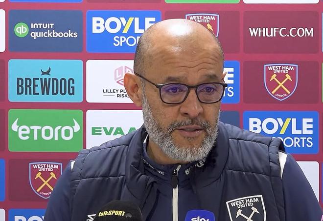 在对阵诺丁汉森林的赛前新闻发布会上,西汉姆联主帅努诺被问到了关于他的葡萄牙同胞阿莫林下课的话题,他表示既惊讶又难过。