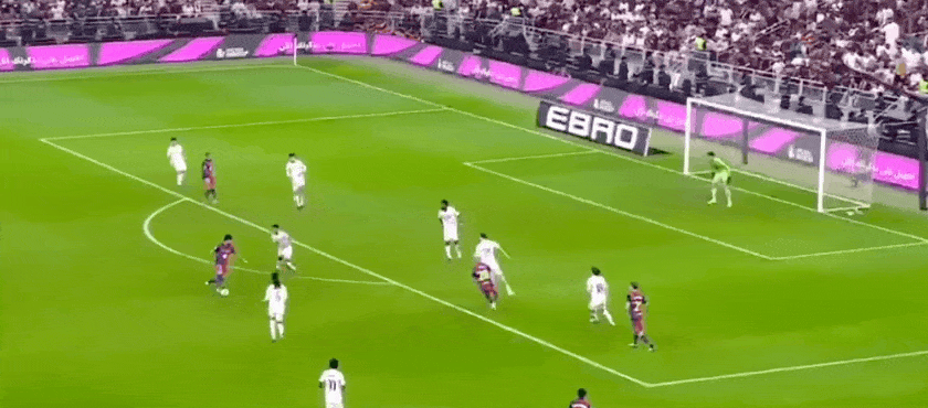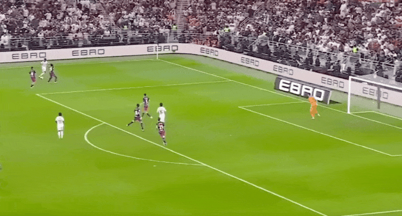 比赛进入伤停补时的第2分钟,维尼修斯一个人打穿巴萨的整个右边路,禁区推射破门,1:1!仅仅一个回合后,佩德里又是一脚手术刀直塞,莱万单刀挑射破门,2:1!随后在严重超时的情况下,皇马利用角球的机会,贡萨洛加西亚捅射破门,2:2。