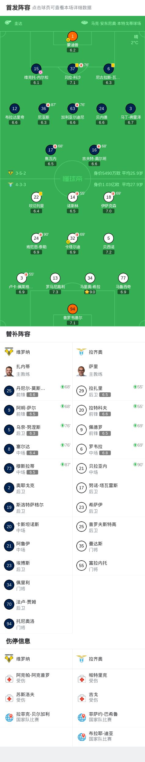 - 半场:维罗纳0-0拉齐奥,伊萨克森造险