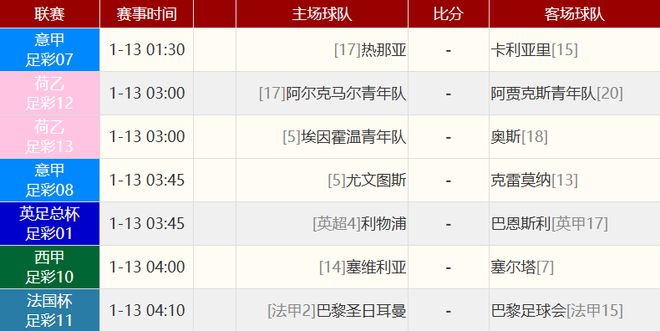 其他赛事比分: